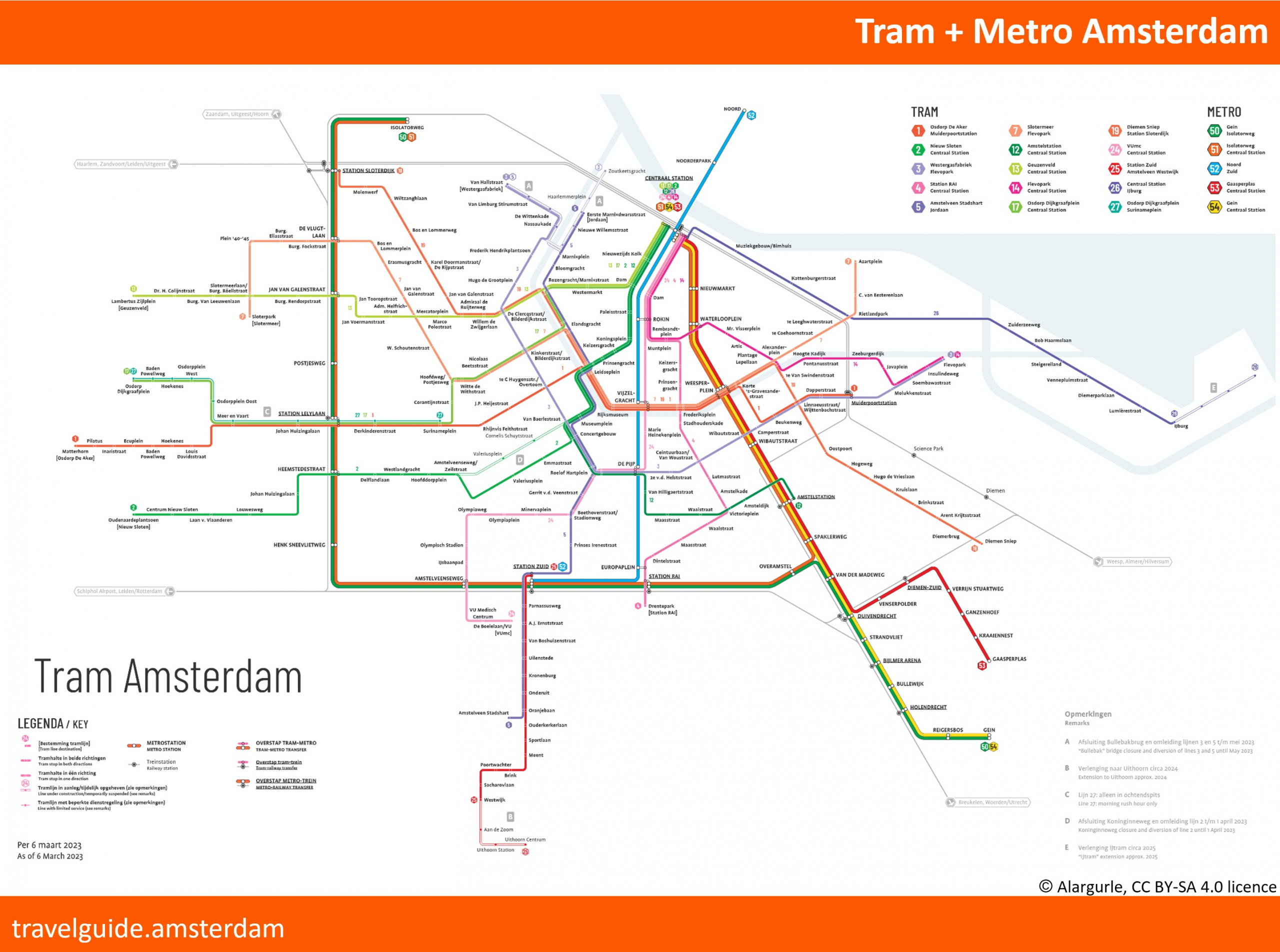 Bottom: tram – top: metro. Amsterdam’s public transport network is designed to allow convenient transfers between different modes of transport.