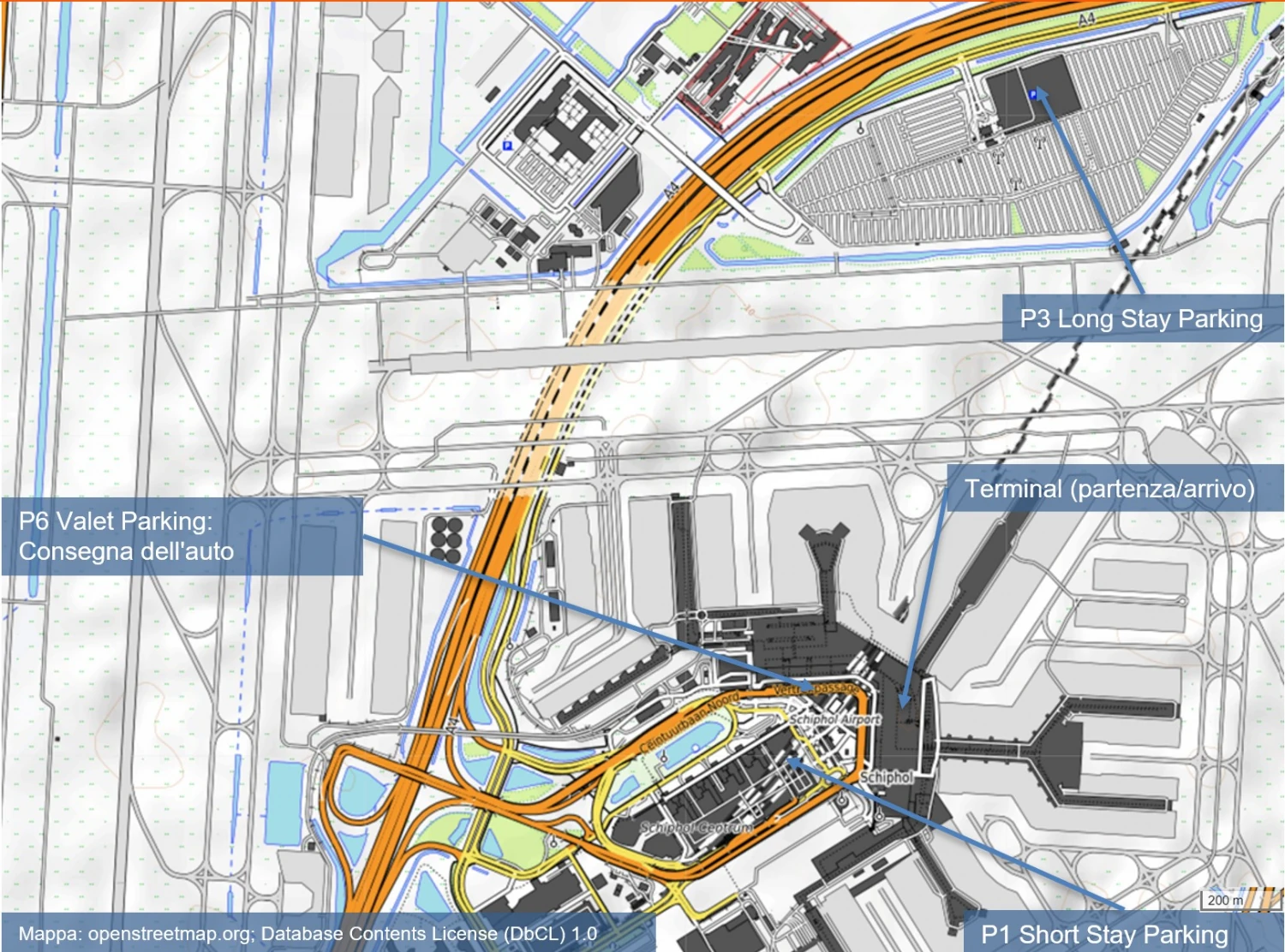 Mappa: Aeroporto di Schiphol – Parcheggi e parcheggi multipiano