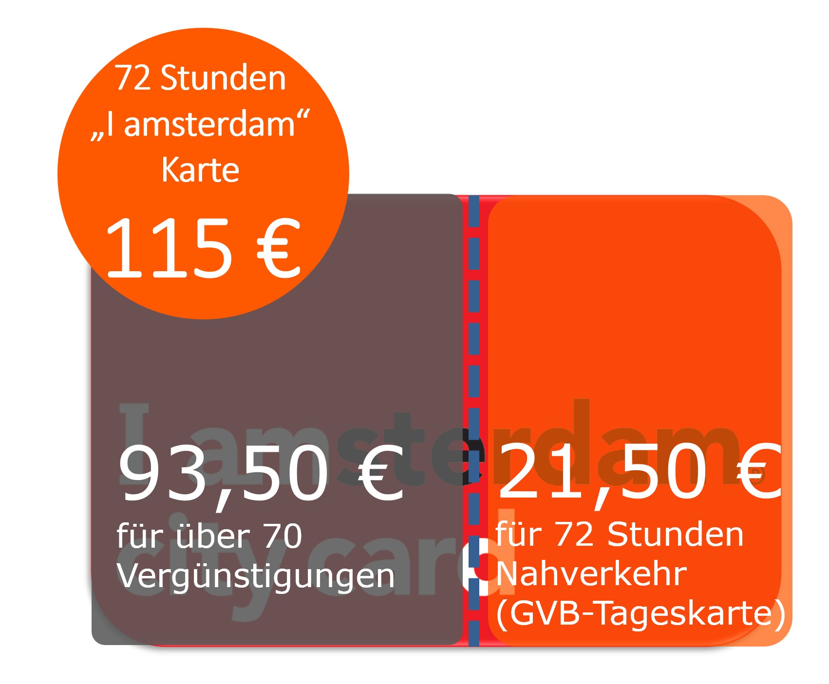 - Questa card è paragonabile ad un biglietto cumulativo GVB, al momento (2026) il prezzo per un biglietto cumulativo GVB da 72 ore è di 21,50 €.